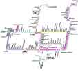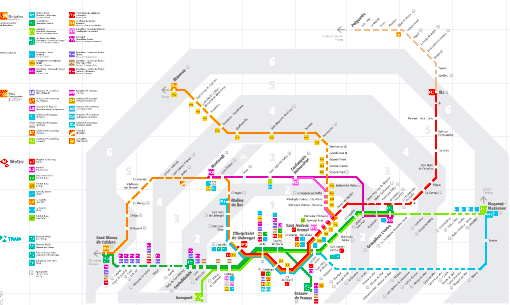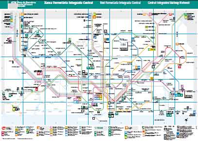 This map covers a similar area to the RENFE map above but shows several rail, tram and metro underground networks