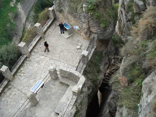 Although called the Roman bridge it was in fact built by the Moors and lead to the important northern gate into the old town of Ronda. This was followed by a steep zig zag path up the cliff slope through the defences into the town on the high plateau above.