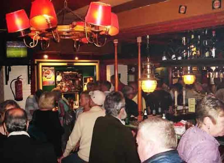 A British Bar that's been there since 1986 showing live football and sometimes has darts & or dice games