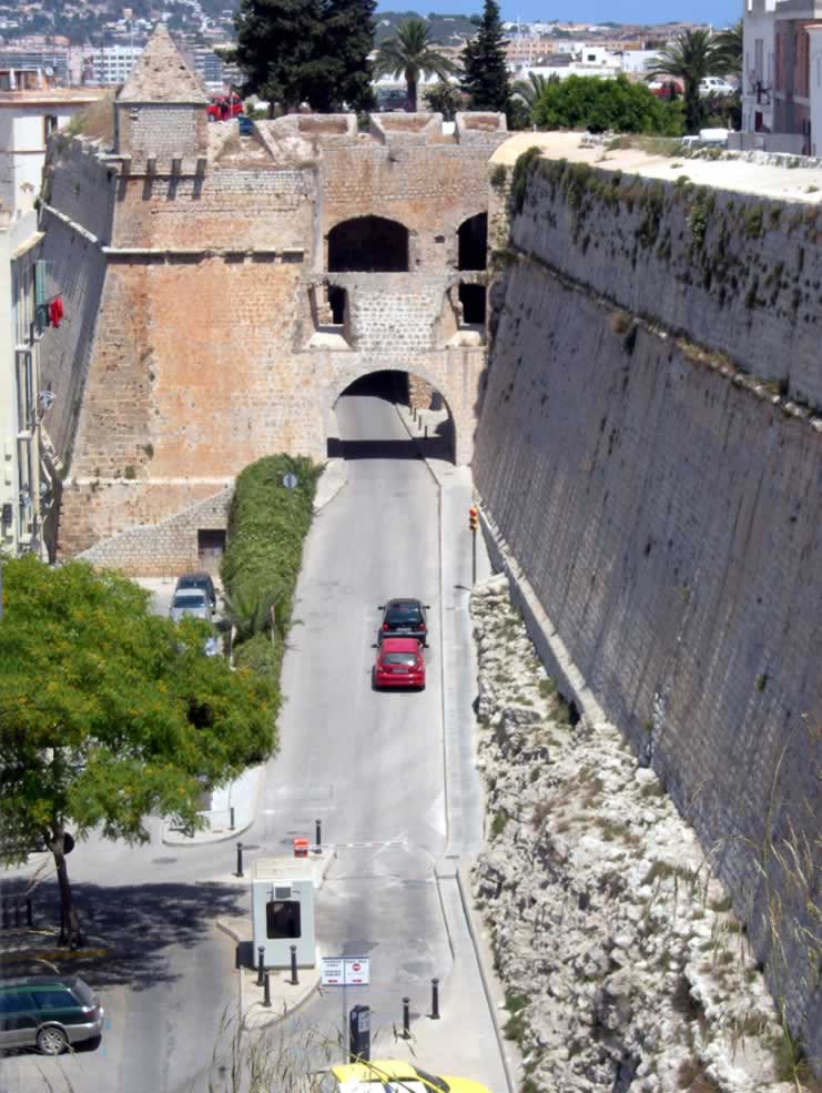 The only gate that allows cars to & from Dalt Vila enters through the St Joan bastion, Ballard de St Joan.