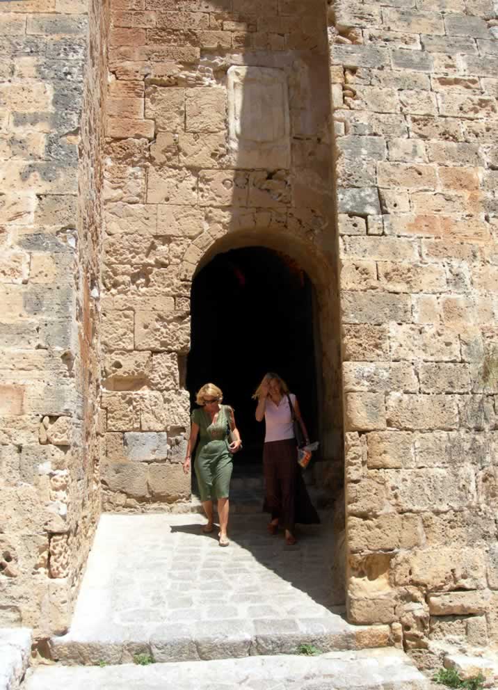 Access is gained from a steep ramp that starts in C. D'Antoni Palau by the town market (Mercat Vell) . Ladies should note that this ramp and the streets, many steep, throughout Dalt Vila are made of shiny cobbles that can be extremely slippery. I therefore recommend sensible shoes instead of high heels.