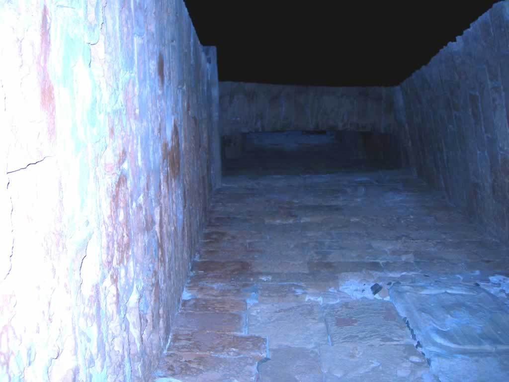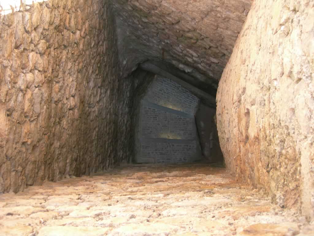 When in the recess look up to see the wide murder hole covering the full width of the recess. Inside the gate there is another murder hole in the ceiling of the passage that has gates. notice the thickness of the walls, the passage is uphill and fairly fairly steep.