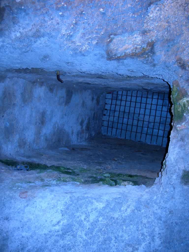 The external entrance to the Tunnel to the Town hall is only 100 metres from the external entrance to the Tunnel to the Cathedral and accessed from the slightly lower car park. From the Car park at the very end of C. del Calvari go down the flight of steps and the tunnel entrance is in front of you in a hole in the ground.