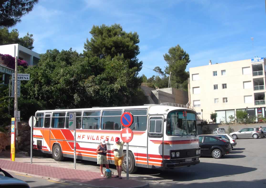 A very useful circular bus service carried out by the Vilabus, which is much smaller bus than the normal bus service buses, but larger than a standard mini van. Because of it's size it goes can enter Dalt Vila, Ibiza towns old walled city.