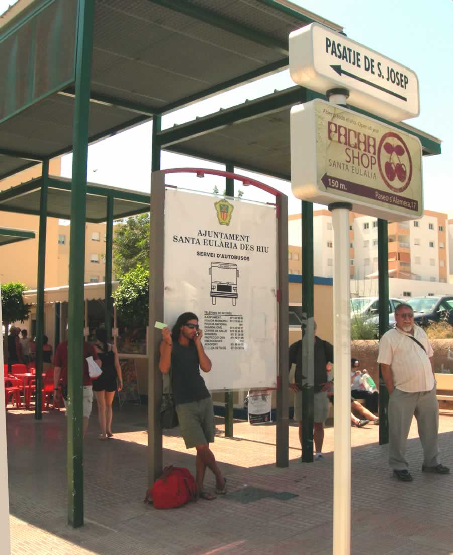 The Es Canor Bus stop is located on the main road from Santa Eularia & Sant Carles around 100 metres from Es Canar beach on the opposite side of the road from the La Perla hotel, Mar y Herta hotel and the Apache cafe bar.