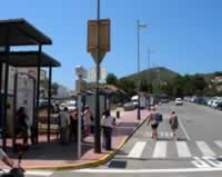 The Portinatx Bus Stop is located along side the main road near to the eastern end of Portinatx beach on the opposite side of the road to the beach and taxi rank.