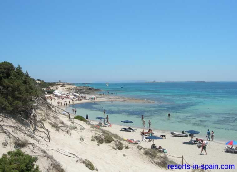 This is probably the most popular beach on Ibiza, and has several beach bars.
